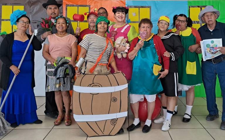 Los adultos mayores -hombres y mujeres- que integran el Club de la Tercera Edad Época de Oro A. C., festejaron el día del niño con una puesta en escena.
