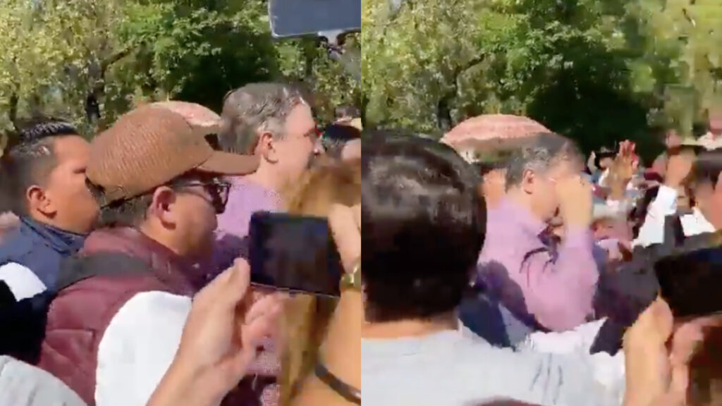 De hecho, el canciller se encontraba rodeado por decenas de personas mientras transita por las calles de la Ciudad de México hasta que repentinamente un objeto lo golpea en el rostro y lo obliga a quitarse sus lentes para revisarlos.