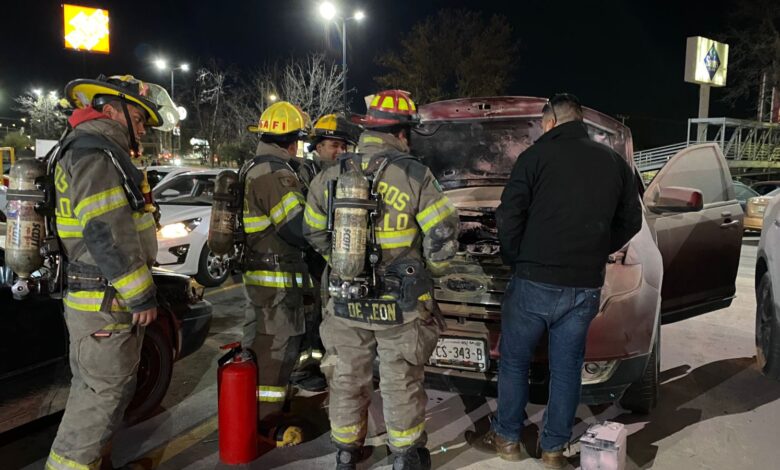 Por un aparente corto en la parte del cofre, una camioneta se incendió durante la noche del viernes, en el estacionamiento de una plaza comercial.