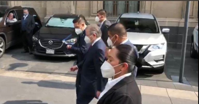 Alrededor de las 10:17 horas de la mañana, el ministro Zaldívar salió caminando rápidamente del recinto histórico por el acceso de la calle de Corregidora número 8.